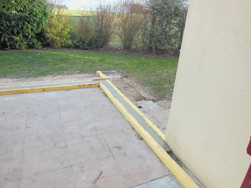 Nous regardons quel type de carrelage (en grande taille à joints décalées, type imitation bois ?) et quelle couleur (beige comme la veranda ou marron pour trancher?) , plinthes assorties mais sur le pignon pour recuperer l'épaisseur en décalage (un pilier 65mm venant s'y adosser )je pensais à de la briquette de parement ....