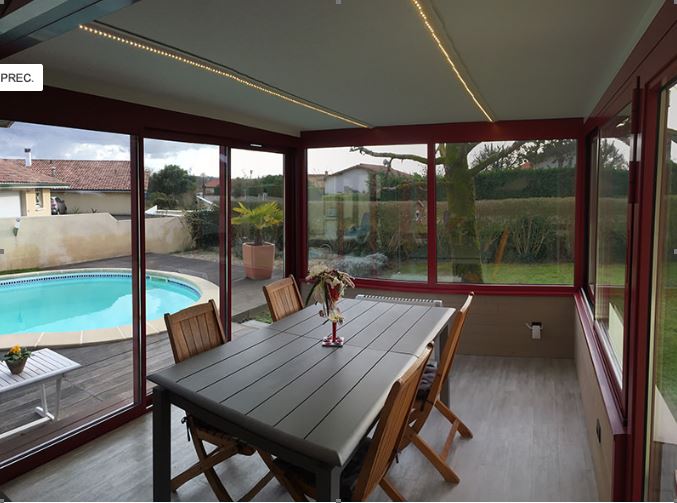 Profilé d'eclairage incorporé au chéneau dans la teinte de la veranda