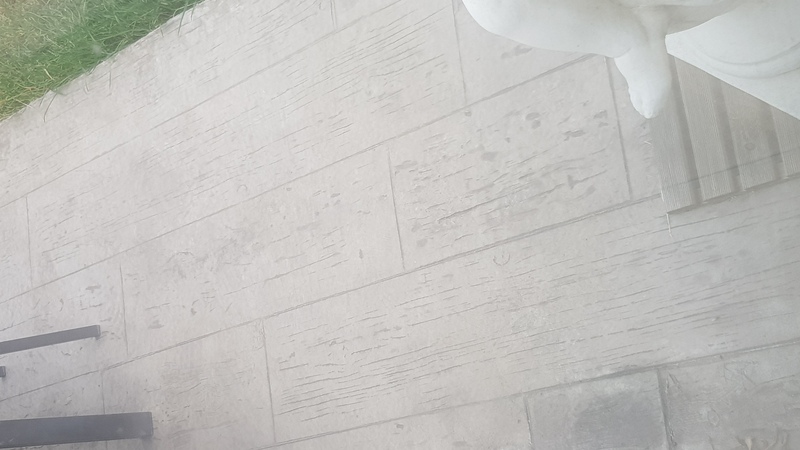 Et la terrasse en beton imprimé ( le carrelage en exterieur peut etre glissant ):