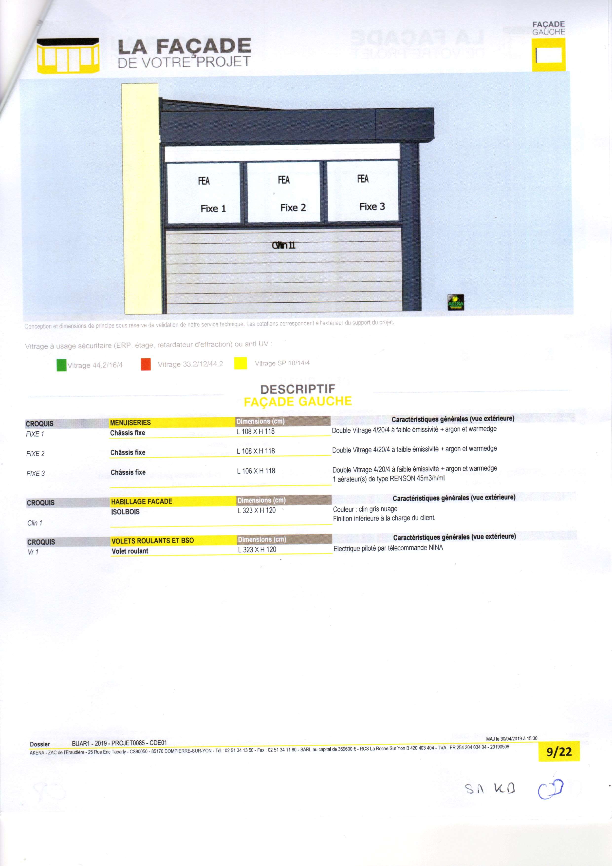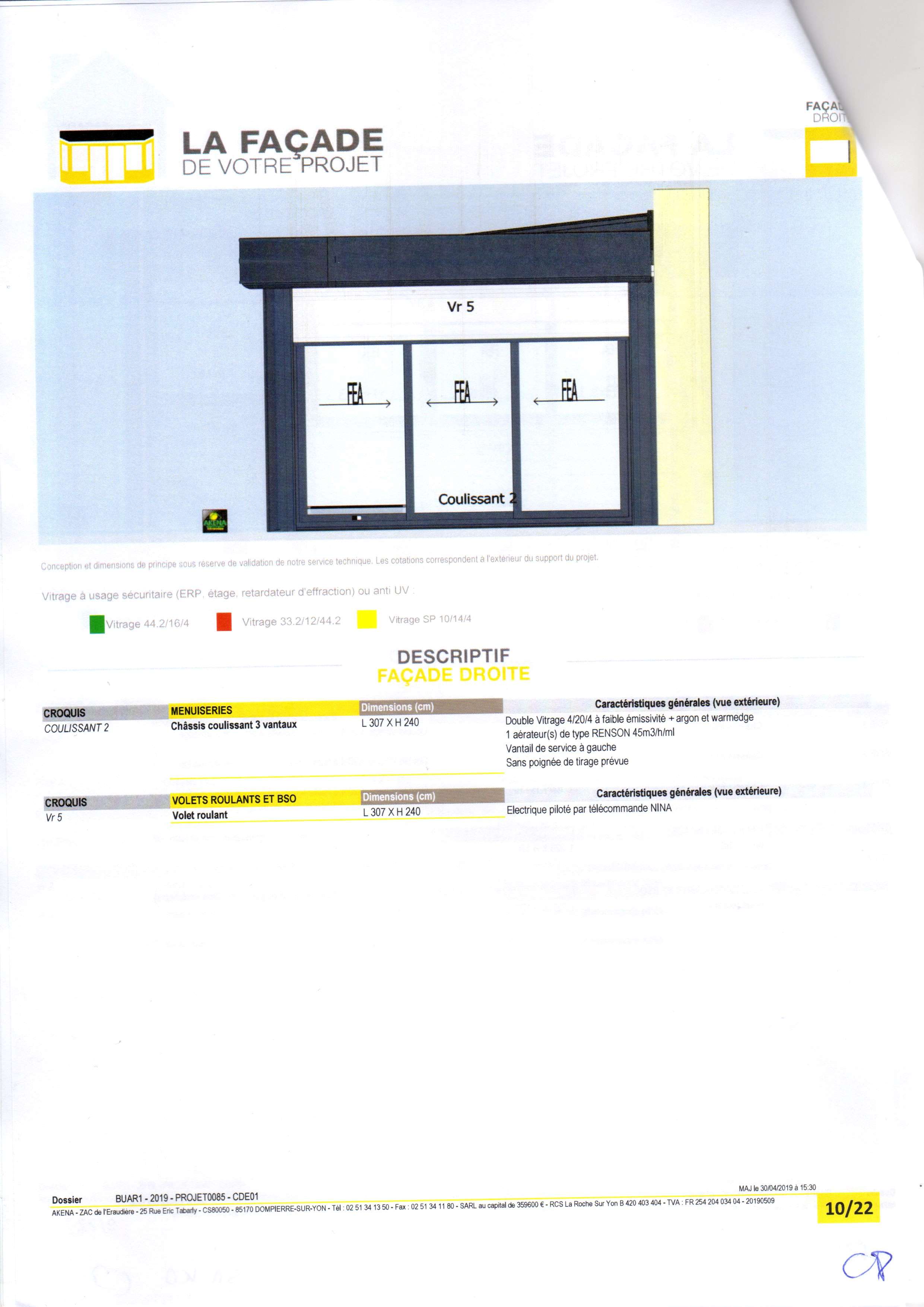 - 2 - Les certificats " A*E*V " ou " air + eau + vent " ainsi que les tests d'endurance / d'efforts de manœuvre ne sont valables que pour les séries de profils permettant une hauteur de 2.20 m hors-dormant (2.25 avec dormants), puisque non mentionnés pour les dimensions en 1.9 m, ils ne sont donc pas assumés pour les séries de profils qui ne permettent pas plus d' 1.90 m de haut hors-dormant ou 1.95 dormant compris, série plus légère/fragile et probablement bien moins coûteuse. A 2,4 m de hauteur, ta façade nécessitent donc des impostes fixes après 2.20 m qui ne sont mentionnées nulle part et probablement masquées sur tes perspectives volontairement (ou non) par les volets baissés. Suspect qu'ils soient descendus plus bas sur les baies de 2.4 m de haut que sur le fixes non? Il est, qui plus est spécifié "Conception et dimensions sous réserve de validation par notre service technique" juste en dessous des vues de face et des côtés en tout petit là où les hauteurs stipulées à 2.4 de baies sont clairement lisible, mais pas sur la page 3/22 de ton devis ou tu as les perspectives sous différents angles, mais où il est à mon avis impossible sur un format A4 de déchiffrer les dimensions. Et là bizarre, il est spécifié "Les dessins du présent document ne sont pas contractuels". Sans réserve aucune... Ce qui rend selon moi tout tes visuels sujet à modification comme bon leur semblera par leur service technique, si dans les autres pages tu n'as rien de concret, ils peuvent donc ainsi par exemple te mettre la série des profils de baie coulissante bloqués à 1.95 dormant compris + une partie haute fixe de 0.45 en imposte, l'ensemble étant bien moins cher qu'une baie testée et validée pour aller jusqu'à 2.4 d'un seul tenant sur l'ouvrant coulissant.