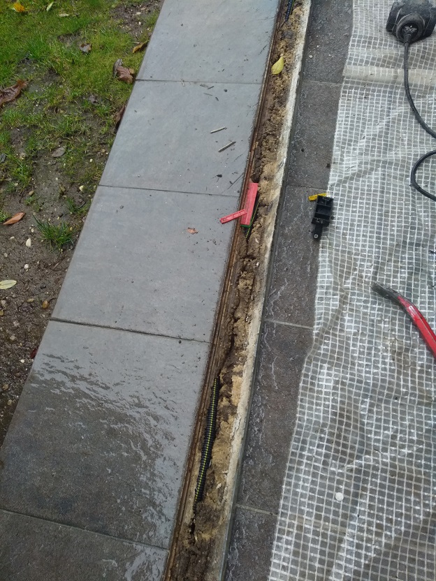 Découverte du câble électrique qui court sous l'emplacement des baies vitrées :x :x :x