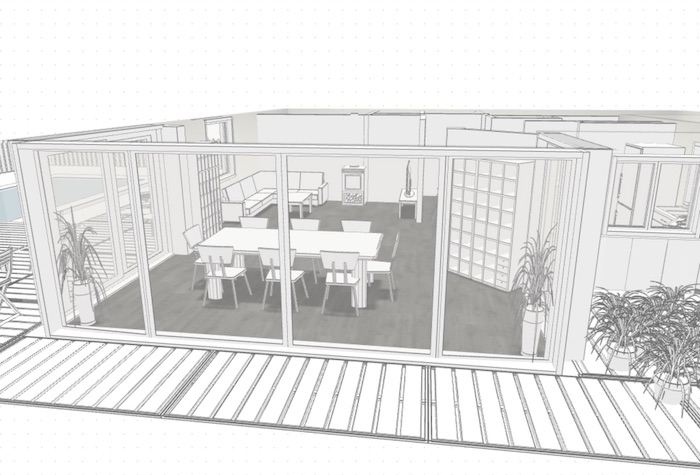 On ouvrirait donc le mur sur toute la largeur de la veranda (6m). Cet aspect est non negociable :D
