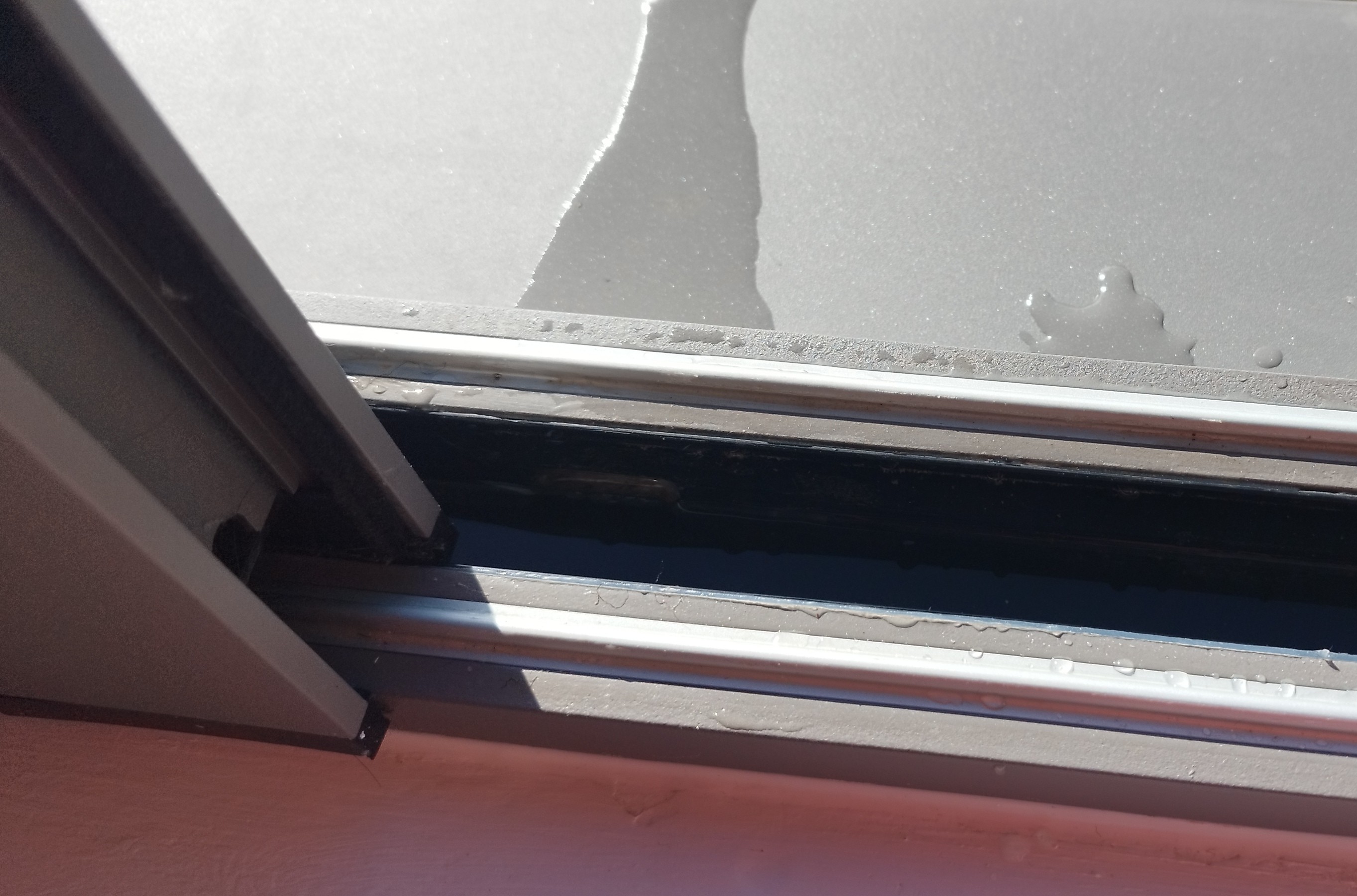 J’ai du mal à voir ta photo mais il y a des évacuations d’eau au fond du rail en bas. Peut-être que ces évacuations sont bouchées?