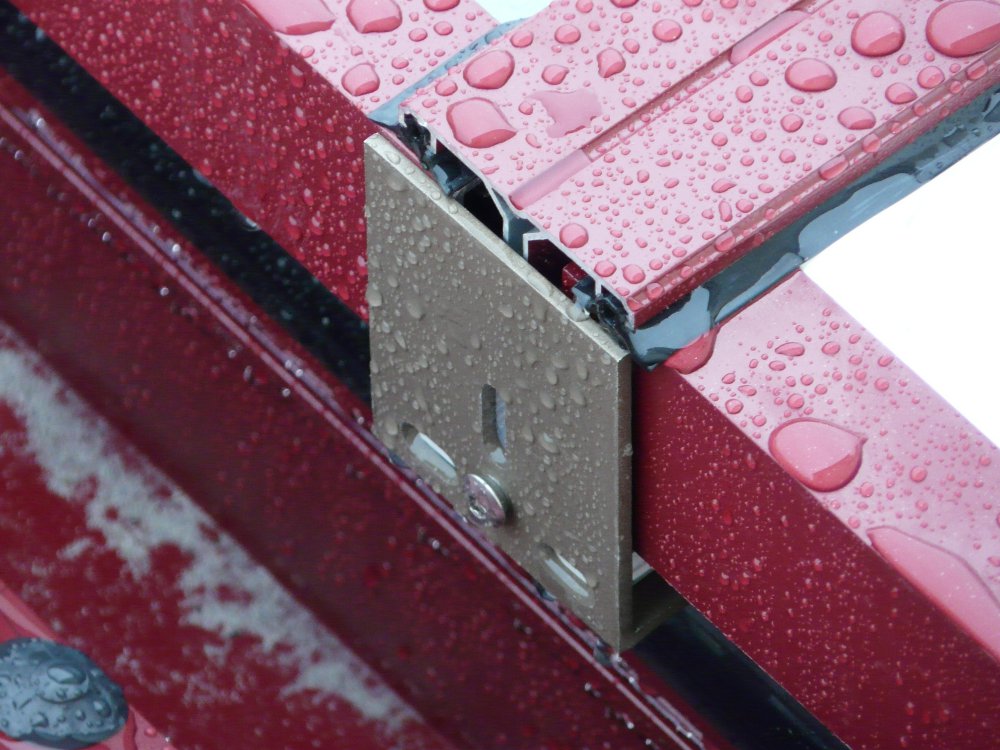 1- certains Verandalistes ont des petits caches de finition de la couleur de ta véranda (voir photo ci-dessous). Si ce n'est pas le cas, tu peux faire un petit joint en silicon noir pour cacher la coupe brillante de l'alu. Tu peux aussi peindre les plaques métalliques avec une peinture de la couleur de ta véranda.