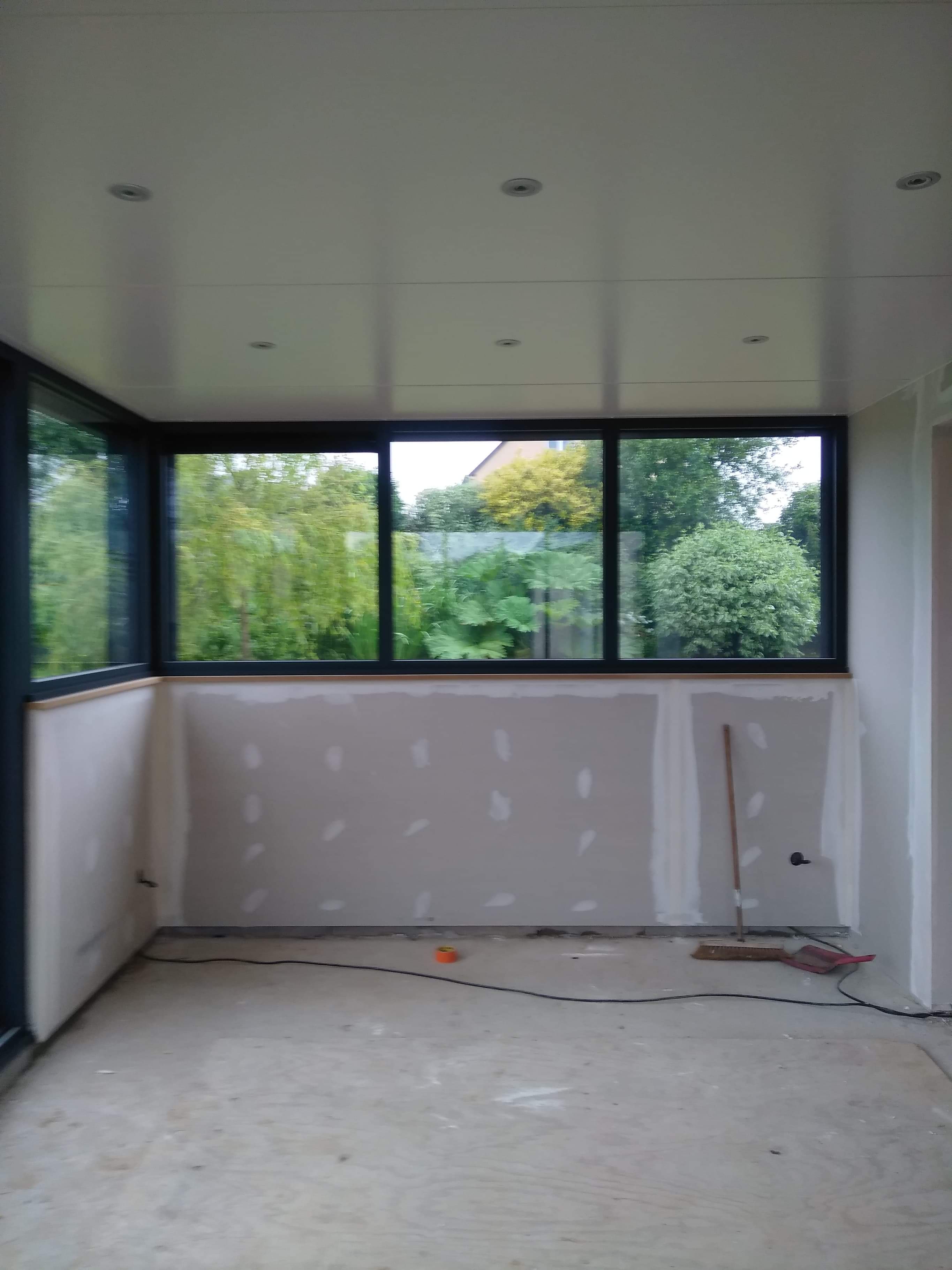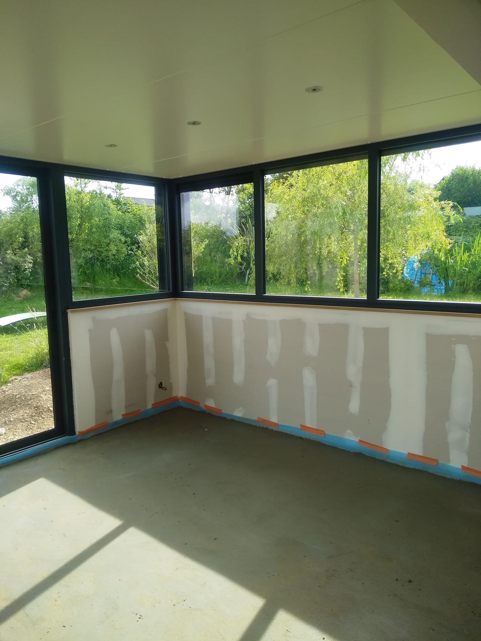 Pas d'eau dans la véranda malgré la pluie, l'intervention à l'air efficace. Le plaquiste est passé ce matin, il revient lundi faire une deuxième passe sur les bandes.