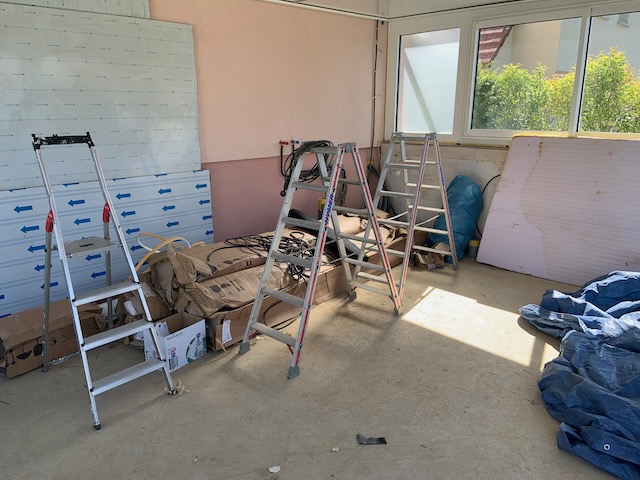 Finalement, la pose de la véranda a débuté le 21 avril 2022.