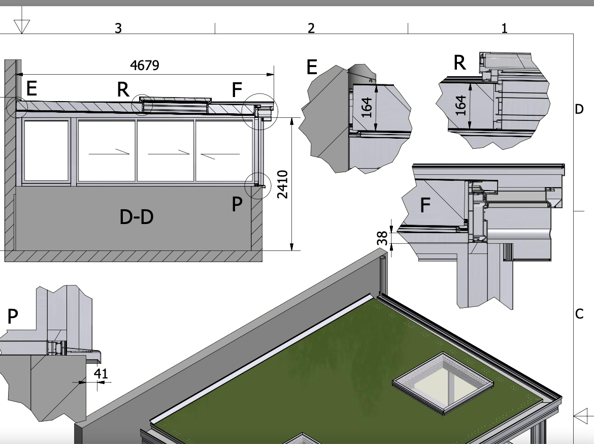 Car sur le plan de production la bavette d'étanchéité semble être positionnée plus bas et moins apparente (détail E).